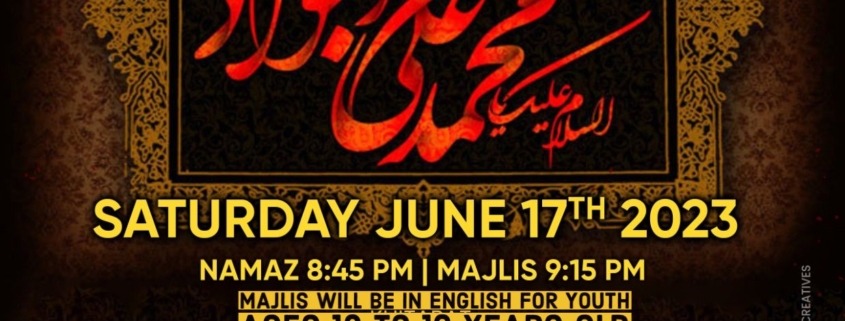 All Events, Featured Events, Key EventsMajlis e Shahadat Imam Taqi A.S. – Youth Majlis Calendar Add to Calendar Add to Timely Calendar Add to Google Add to Outlook Add to Apple Calendar Add to other calendar Export to XML When: 06/17/2023 @ 8:45 PM – 10:30 PM 2023-06-17T20:45:00-05:00 2023-06-17T22:30:00-05:00 All Events Featured Events Key Events 06/13/2023/0 Comments https://www.iechusaini.org/wp-content/uploads/2023/06/WhatsApp-Image-2023-06-12-at-11.04.57-PM.jpeg 1600 1236 Murtaza Jaffery https://www.iechusaini.org/wp-content/uploads/2018/12/ie-logo.png Murtaza Jaffery2023-06-13 16:42:442023-06-13 16:43:25Majlis e Shahadat Imam Taqi A.S. – Youth Majlis