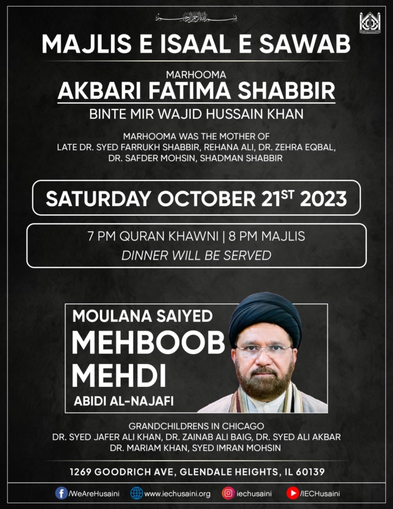 Majlis e Isaal e Sawab Marhooma Akbari Fatima Shabbir