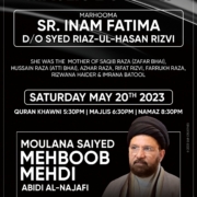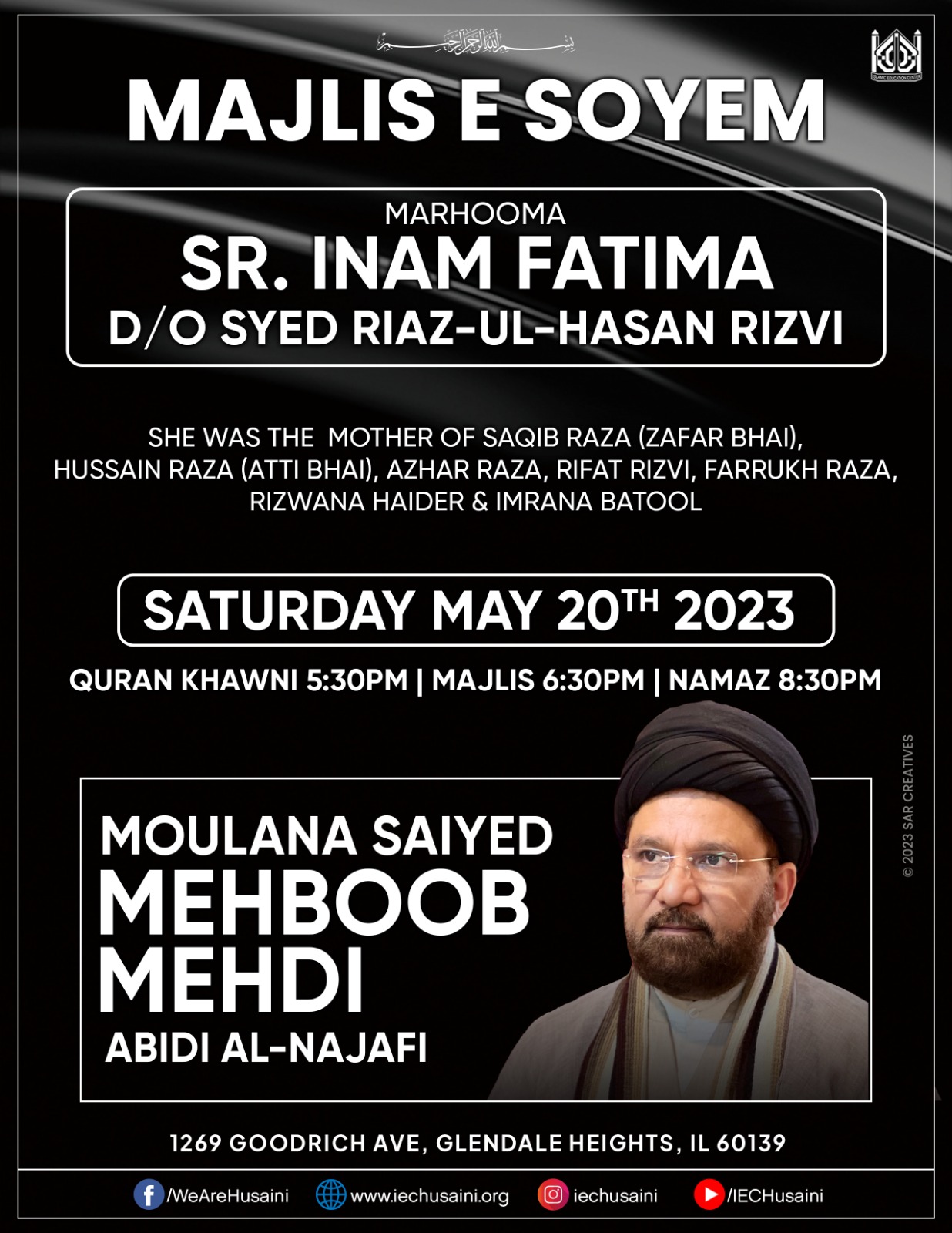 Haider Ali 2023-05-12 20:03:03 2023-05-18 14:41:47 Majlis e Soyem (Sr. Inam Fatima)