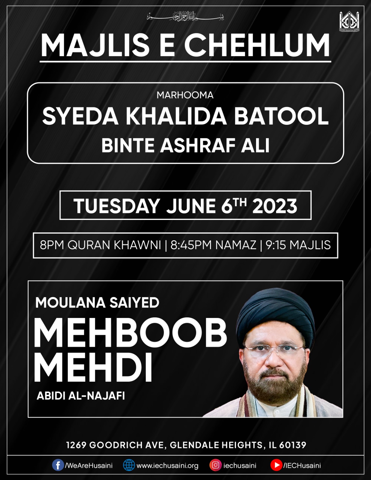 Haider Ali 2023-05-12 20:03:03 2023-06-05 17:30:35 Majlis e Chehlum (Syeda Khalida Batool)